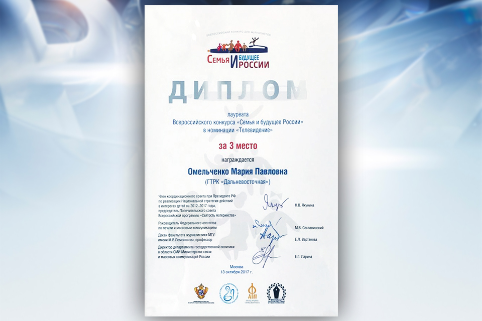 2023 год принёс ГТРК «Дальневосточная» новые награды телевизионных фестивалей и конкурсов, проводимых в разных городах России. Проект «До конца» специального корреспондента Анны Леоновой, посвящённый памяти Героя России, офицера Росгвардии Максима Концова, отмечен жюри в номинации «Время героев» на фестивале «Герой нашего времени».