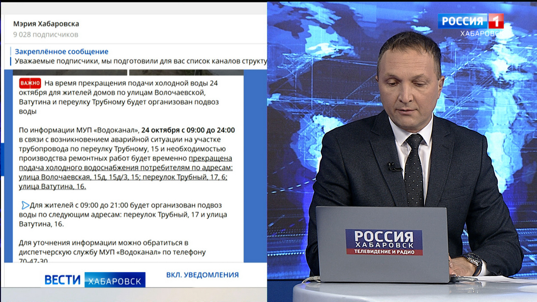 Как сообщает телеграм-канал мэрии города, водоснабжения лишились несколько домом по Волочаевской, Ватутина и на Трубном. Для жителей до 21 часа будет организован подвоз воды.
