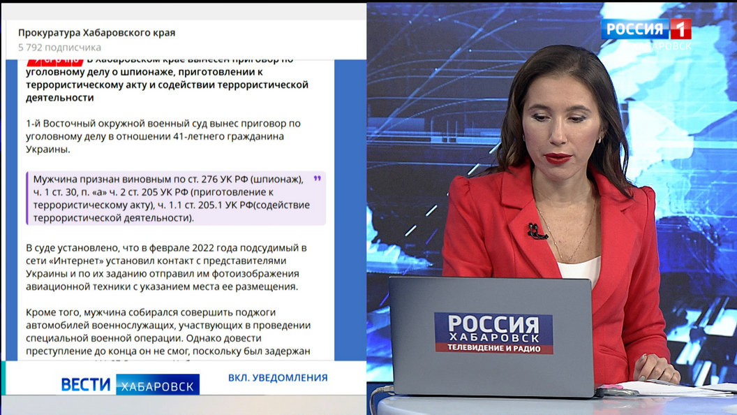 Как сообщает прокуратура региона, в феврале 2022 года в интернете мужчина установил контакт с представителями Украины, по их заданию отправил фото авиационной техники и указал место её размещения.