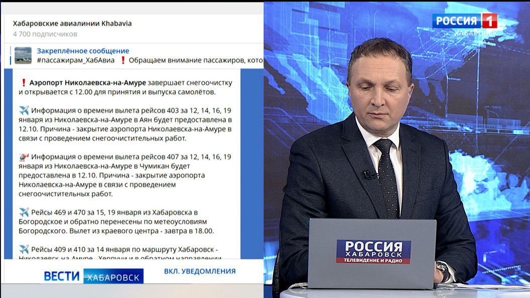 По метеоусловиям на побережье перенесён на завтра вылет самолётов по маршруту Хабаровск – Николаевск — Охотск. «Вести» следят за развитием событий.