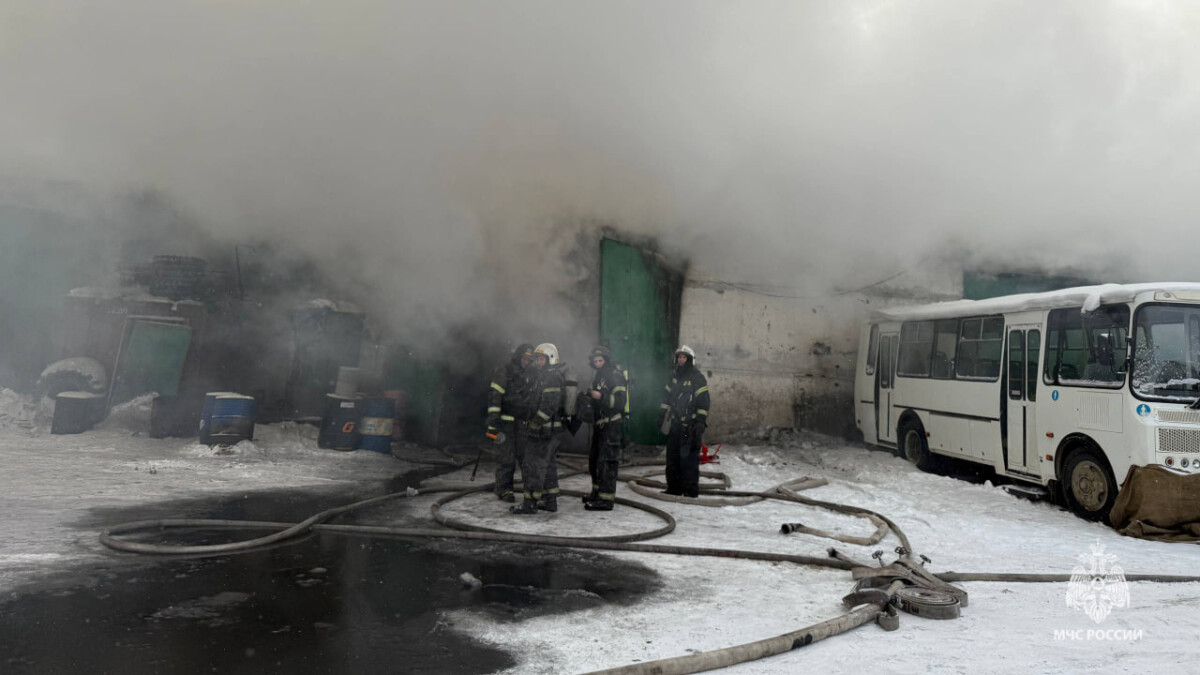 Сообщение о пожаре поступило в 12:20. Огонь охватил железобетонный бокс, внутри которого, по предварительным данным, находился автомобиль и оборудование.