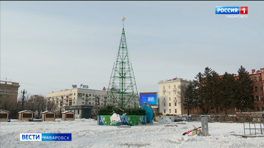 Главная ёлка региона буквально «сбросила хвою» – от восемнадцатиметровой конструкции остался лишь металлический каркас. В этом сезоне территория стала, своего рода, картой края: под гигантским световым шатром стояли девятнадцать елей – по одной от каждого района.