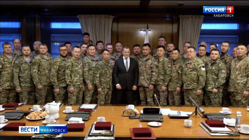 На встрече с добровольцами из числа госслужащих, которые вернулись из зоны спецоперации по окончанию контракта, жителей региона с праздником поздравил полпред Юрий Трутнев.