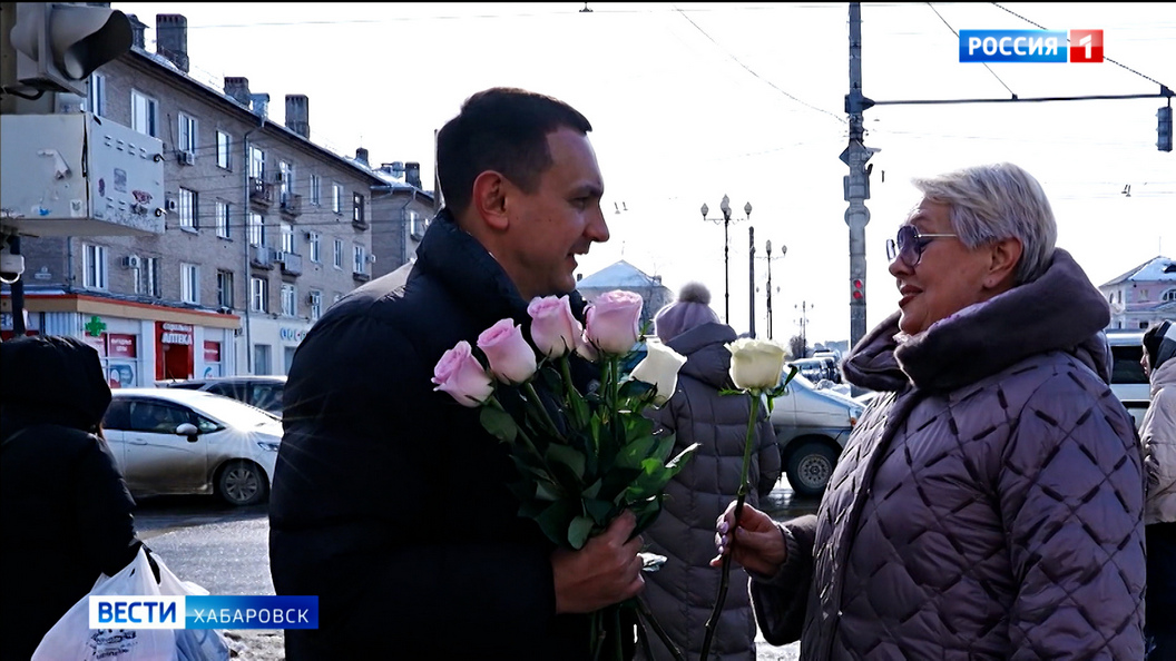 Хабаровчанки охотно принимали такие подарки, слушали пожелания в преддверии 8 марта, а в ответ дарили улыбки – не менее яркие, чем цветы.