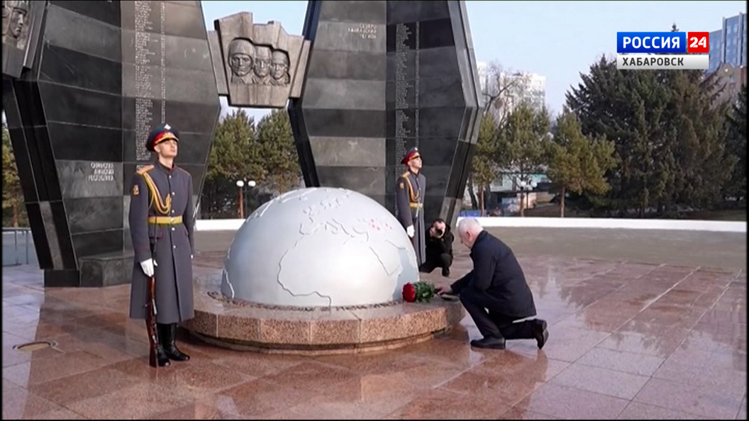 Ну а началась командировка Александра Гуцана с посещения площади Славы. Вместе с губернатором, руководителями генеральной и краевой прокуратуры, Восточного военного округа и силовых структур почтил память героев Великой Отечественной войны. Возложил цветы к вечному огню и, конечно, внимание к мемориалу воинам, которые стояли на защите интересов страны в локальных конфликтах.