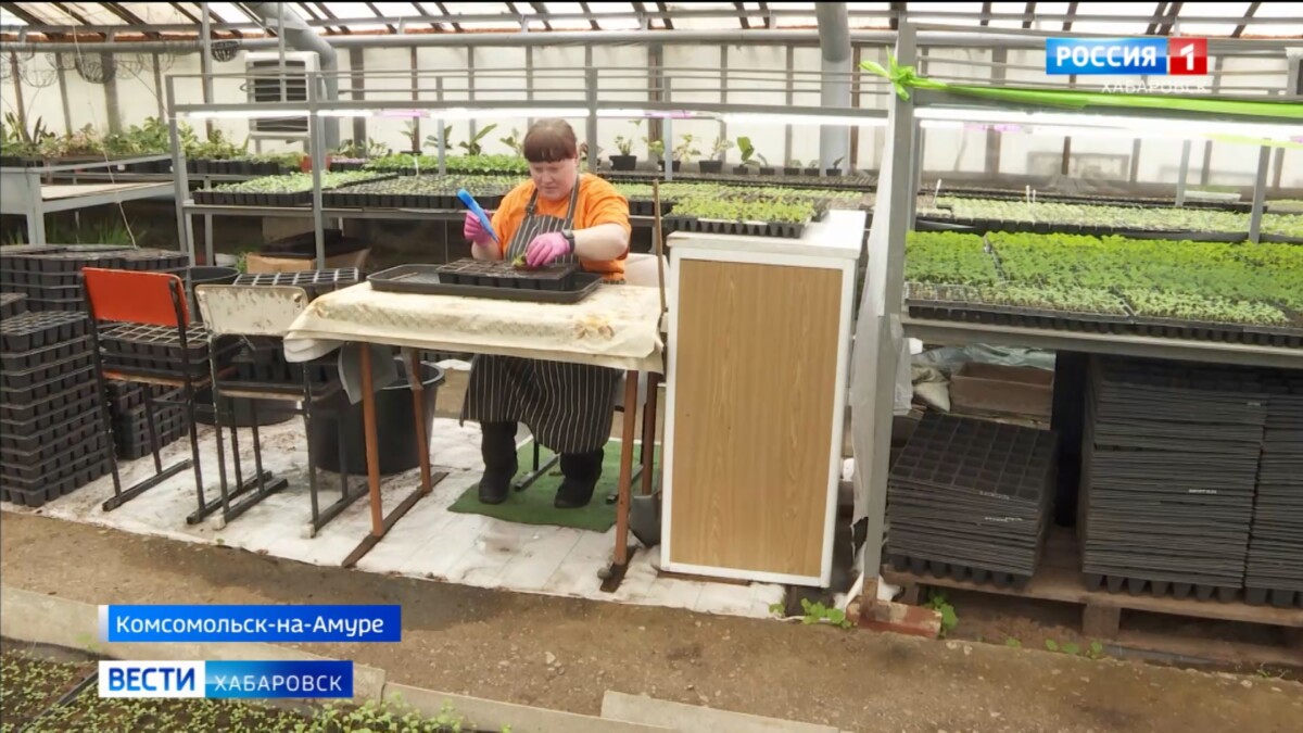 Светлана Осинцева, агроном: «Посевы у нас начались примерно с конца февраля. Согласно нашим природным условиям, раньше нам и не нужно, допустим, производить посевы цветущих культур однолетних. Ну, всё у нас сделано вовремя. Рассада подрастает».